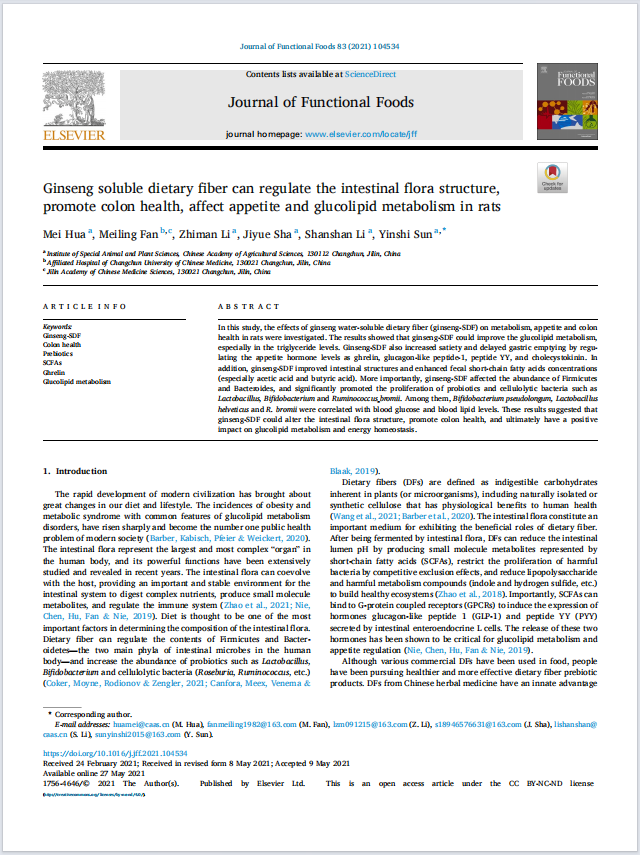 <div><br /> 【引用產品】:<span style="font-size: medium;"><strong><a href="http://www.musiclight.cn/goods-59461.html"><span style="color: rgb(51, 153, 102);"><u>Rat ghrelin ELISA Kit</u></span></a></strong></span></div> <div>&nbsp;</div> <div>【產品貨號】:ml059461</div> <div>&nbsp;</div> <div>【論文標題】:Ginseng soluble dietary fiber can regulate the intestinal flora structure, promote colon health, affect appetite and glucolipid metabolism in rats</div> <div>&nbsp;</div> <div>【論文網址】:<span style="color: rgb(255, 0, 0);"><strong><a href="https://www.sciencedirect.com/science/article/pii/S1756464621001833"><span style="color: rgb(255, 0, 0);"><u>https://www.sciencedirect.com/science/article/pii/S1756464621001833</u></span></a></strong></span></div> <div>&nbsp;</div> <div>【影響因子】:4.451</div> <div>&nbsp;</div> <div>【反應物種】:Rat</div> <div>&nbsp;</div> <div>【第一作者】:Mei Hua</div> <div>&nbsp;</div> <div>【通信作者】:Mei Hua</div> <div>&nbsp;</div> <div>【發表時間】:2021-05-27</div> <div>&nbsp;</div> <div>【期 刊】:Journal of Functional Foods</div> <div>&nbsp;</div> <div>【單 位】:中國農業科學院特種動植物研究所</div> <div>&nbsp;</div> <div>【實 驗】:ELISA</div> <div>&nbsp;</div> <div>【組 織】:serum</div> <div>&nbsp;</div> <p>【DOI】:10.1016/j.jff.2021.104534&nbsp;<br /> <br /> <img src="/images/upload/Image/圖片1(6494).png" alt="" /></p>