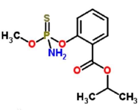 水胺硫磷(Isocarbophos)是一種有機磷殺蟲劑,分子式為C11H16NO4PS。水胺硫磷純品為無色鱗片狀結晶,能溶于乙醚、苯、丙酮和乙酸乙酯,不溶于水,難溶于石油醚,工業品為茶褐色粘稠的油狀液,放置過程中不斷析出結晶,有效成份含量85-90%, 常溫下貯存穩定。